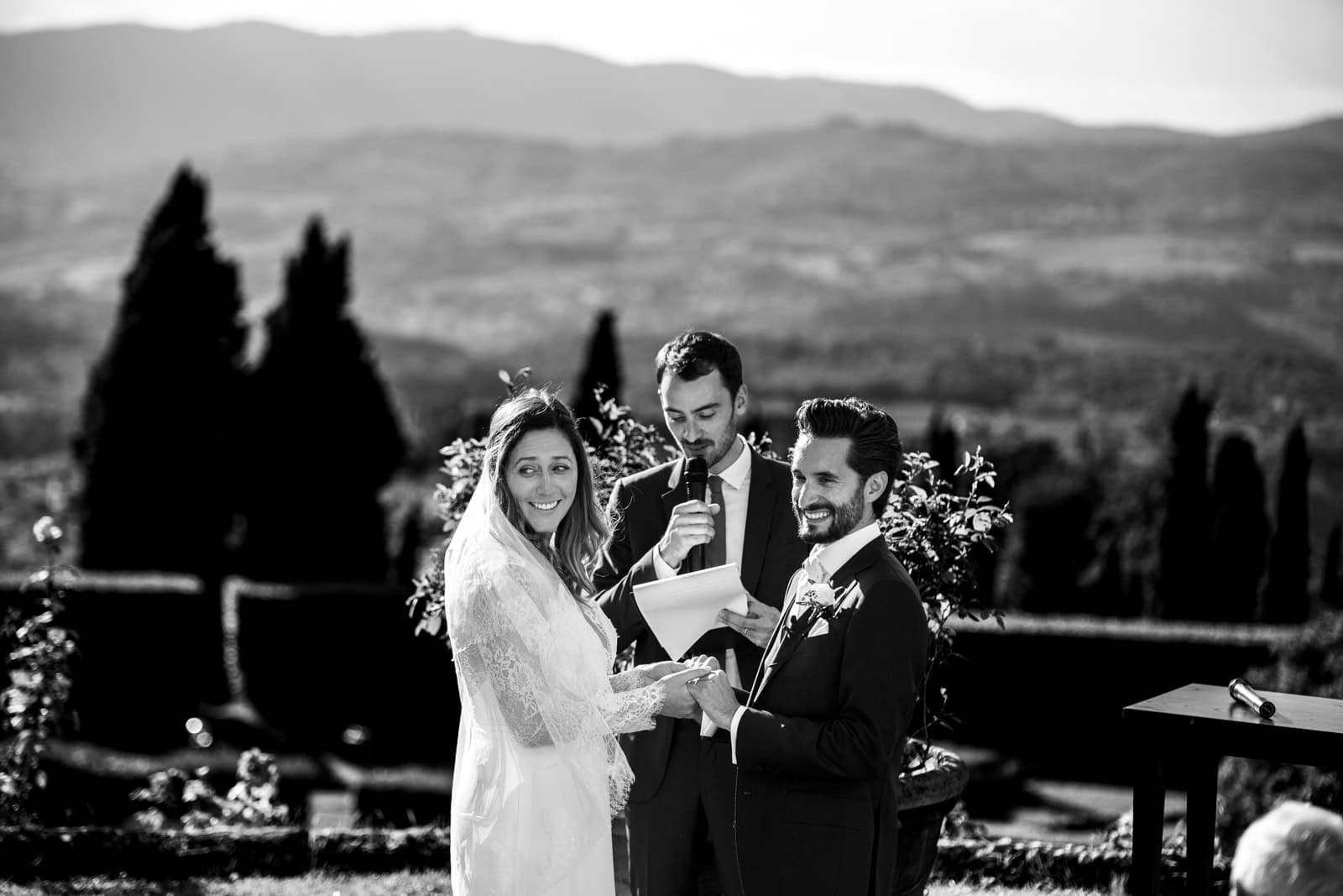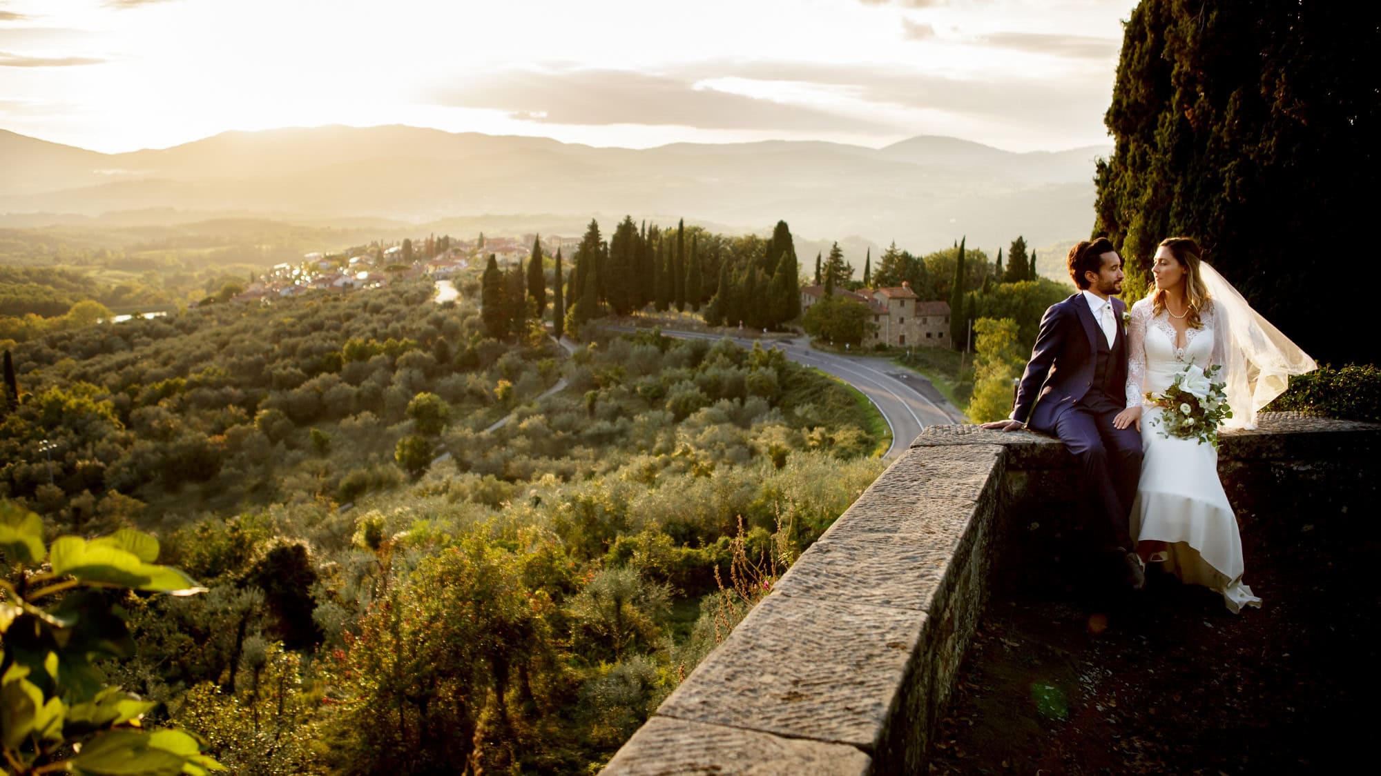 Jennifer and Thibaut’s wedding at Villa Pitiana in Tuscany was a celebration full of warmth and charm. Set high in the hills with sweeping views over olive groves and vineyards, the villa offered the perfect backdrop for a relaxed yet elegant day. They planned everything from Canada without ever visiting Italy beforehand – a bold choice that came together beautifully. Friends and family travelled from around the world to be with them, bringing an amazing blend of cultures and energy. The ceremony took place beneath the Tuscan sun, followed by dinner inside the villa’s grand hall, where long tables were filled with good wine, laughter, and stories. As night fell, the music began and the dancing carried on late into the evening. It was a day that felt effortless and genuine – a true reflection of Tuscany’s beauty and the couple’s joyful spirit.
