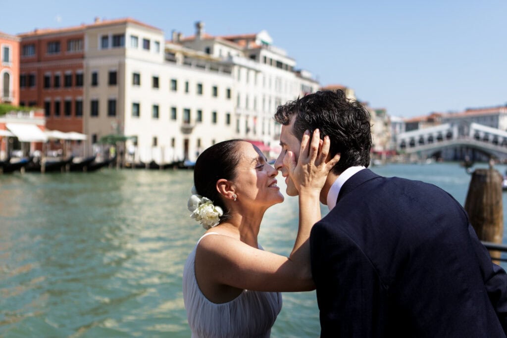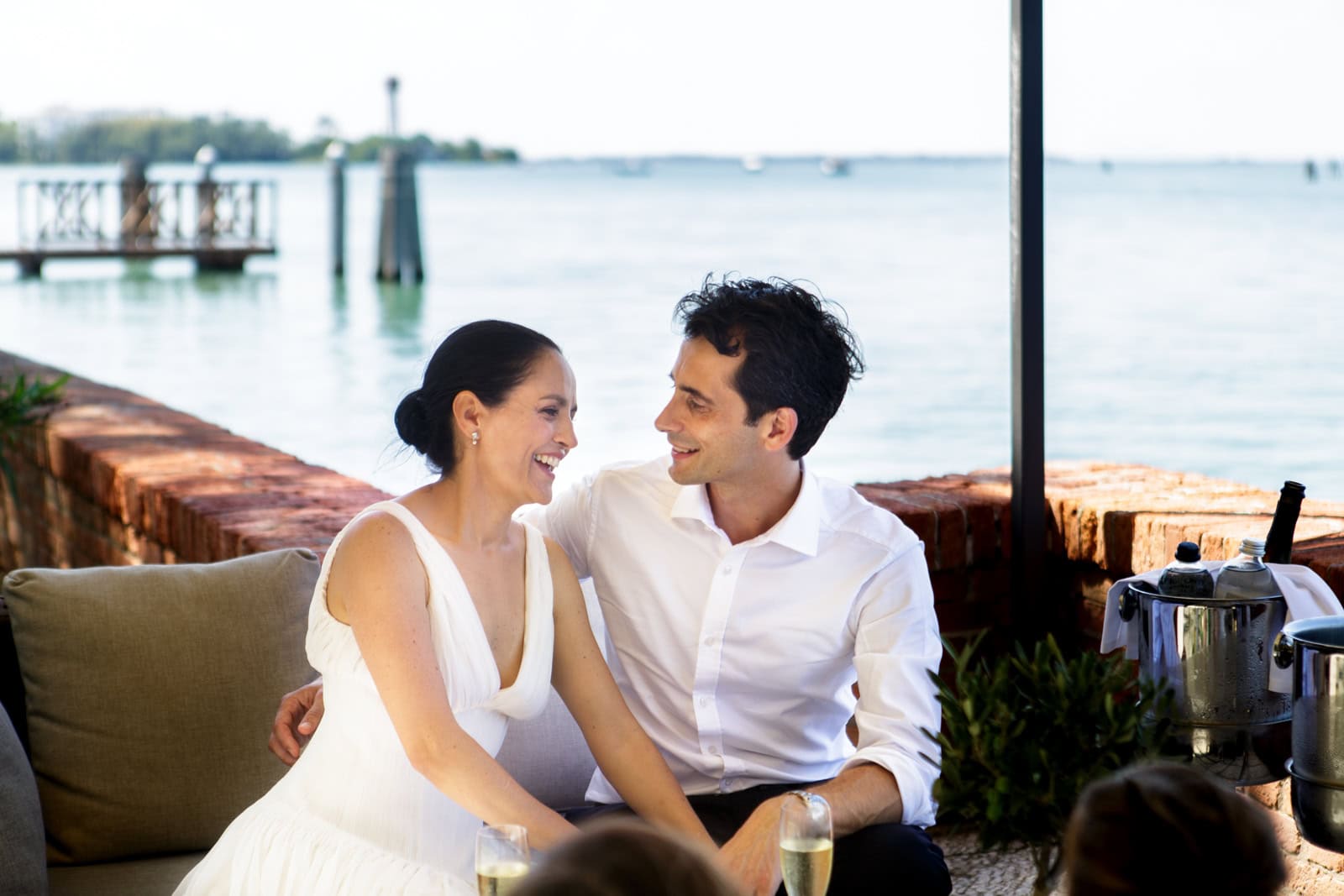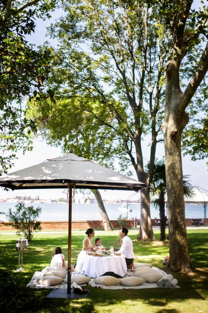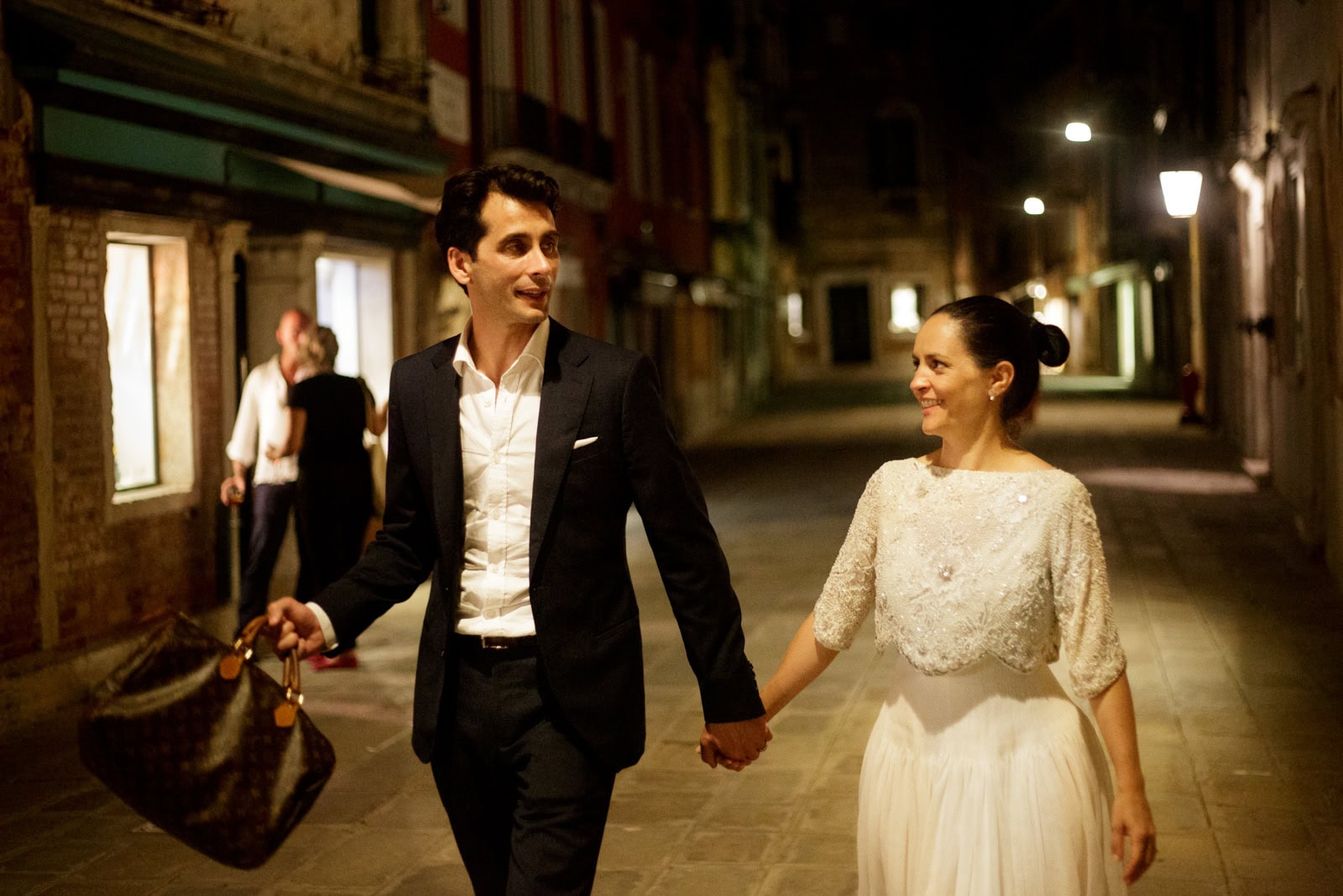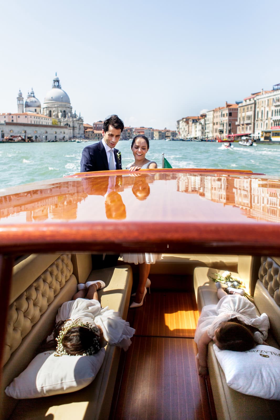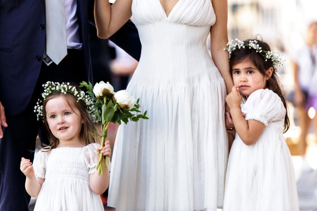 Vanessa and Marc chose to celebrate their wedding in Venice, just the two of them and their daughters — an intimate and beautifully secret day that no one else knew about. Preparations began at Palazzina Grassi, a stylish and artistic boutique hotel that perfectly matched the relaxed and modern feel of their celebration. From there, Vanessa travelled by gondola through the canals to Palazzo Cavalli, where Marc and their daughter were waiting for her. As there were no guests, I had the honour of being one of their wedding witnesses, while the guitarist who played during the ceremony acted as the second. Afterwards, they took a boat to San Clemente Palace Kempinski, a beautiful hotel set on its own private island overlooking the Venetian skyline. There, they enjoyed a quiet family picnic before we wandered through the gardens for some relaxed evening photos. It was a day full of warmth, intimacy, and emotion – simple, spontaneous, and completely their own.
