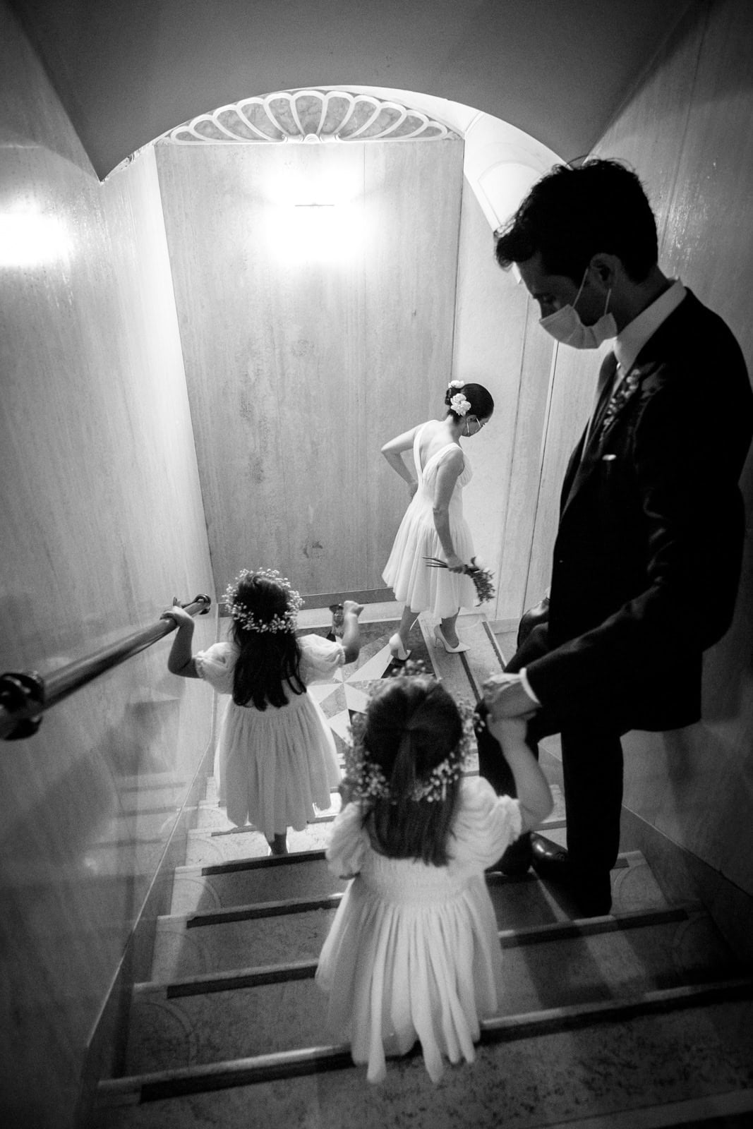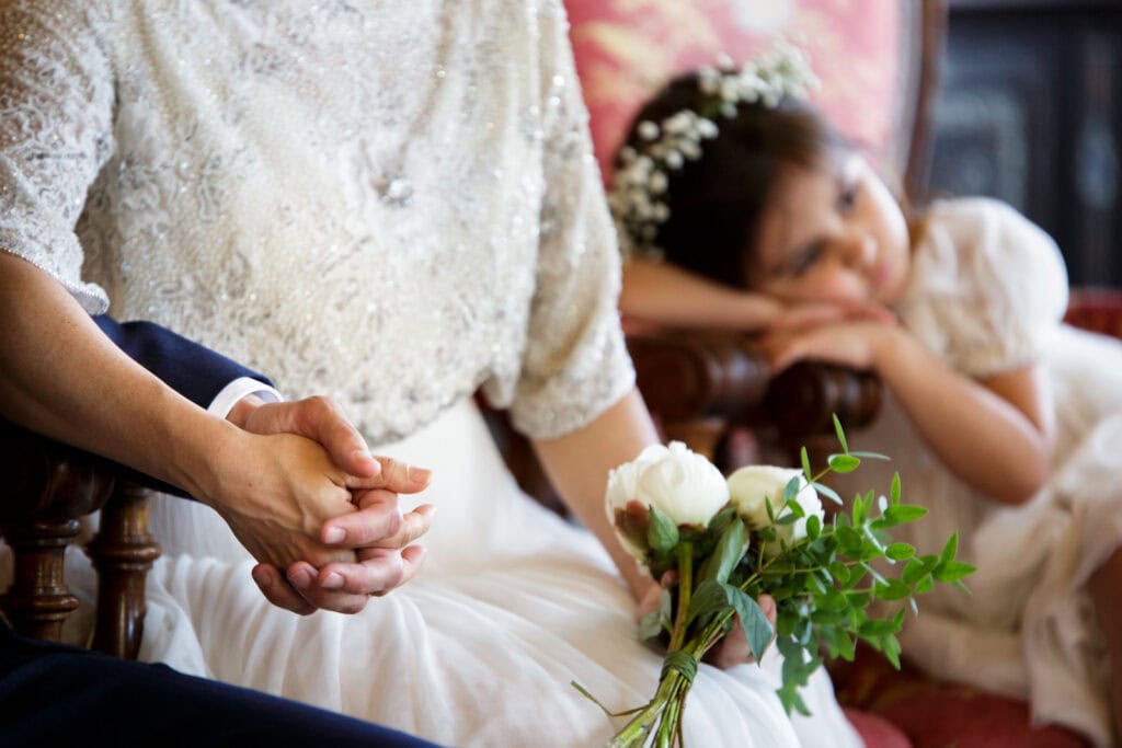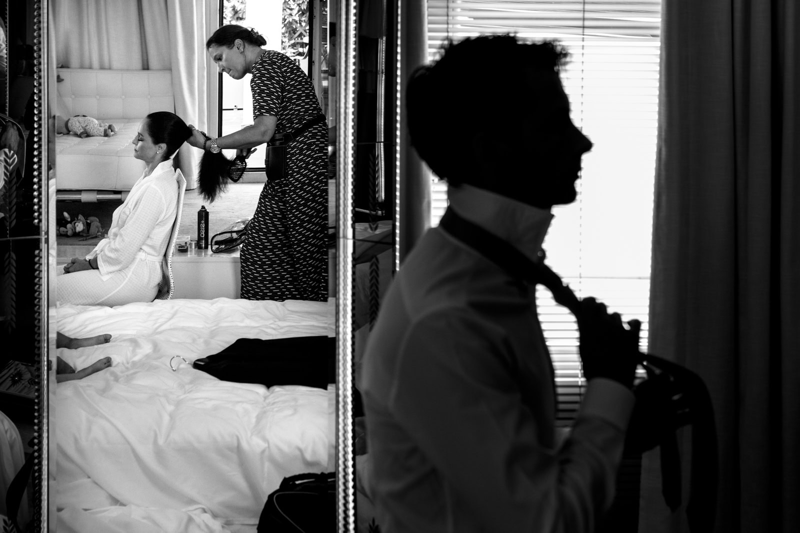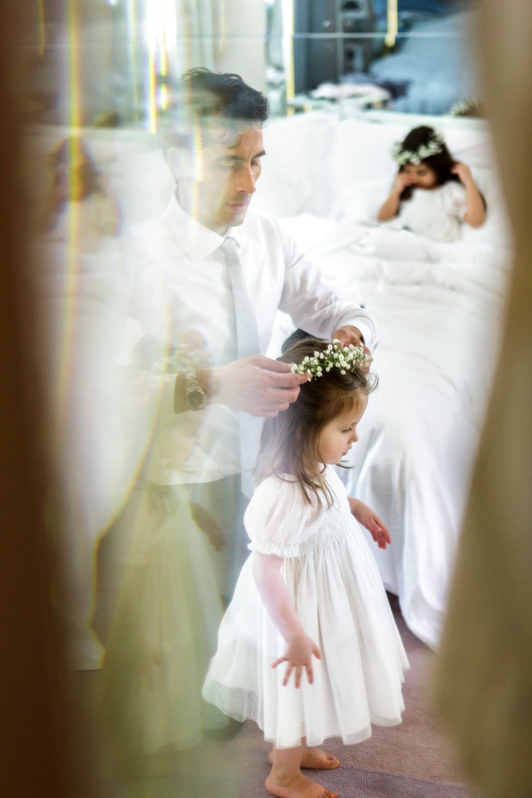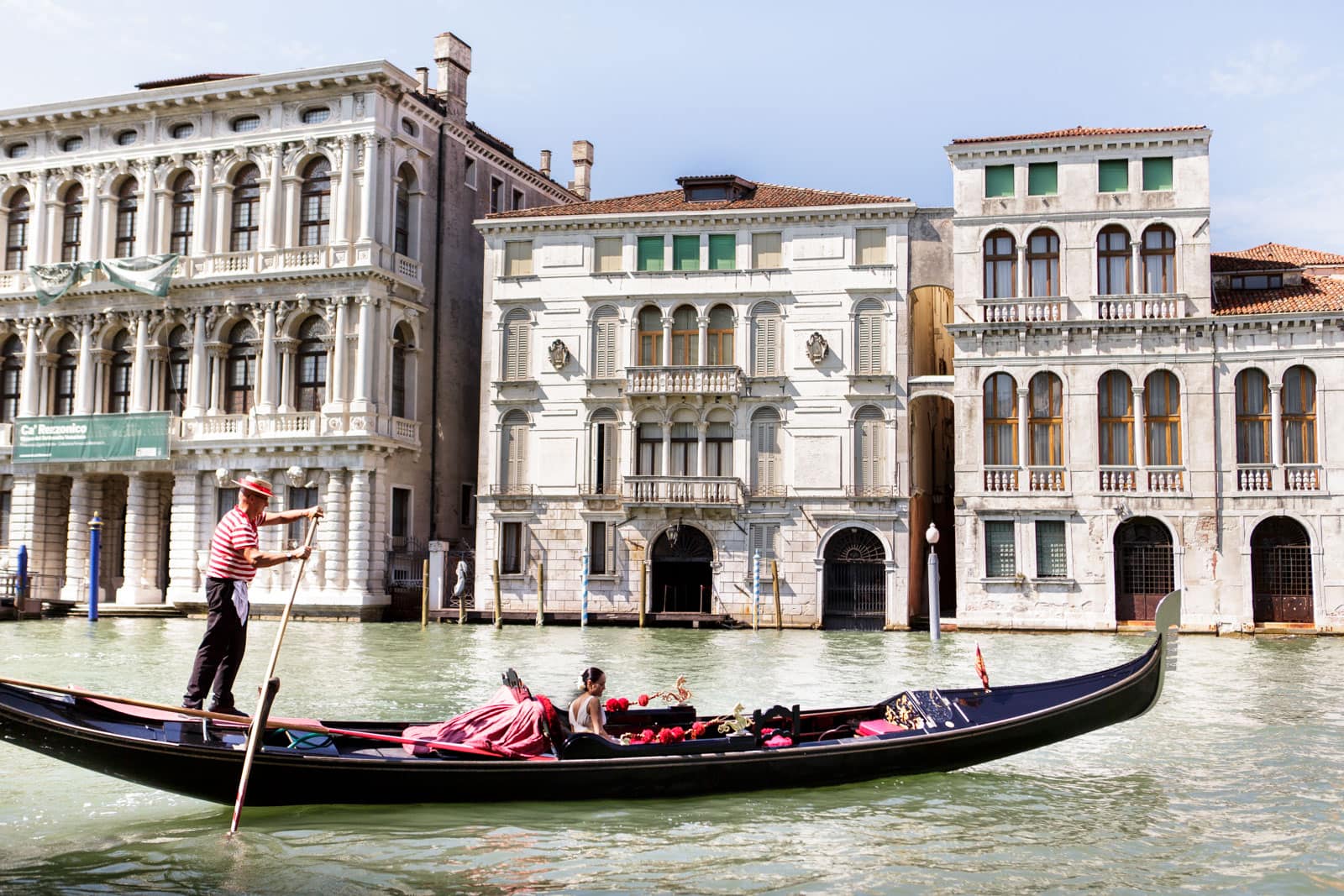 Vanessa and Marc chose to celebrate their wedding in Venice, just the two of them and their daughters — an intimate and beautifully secret day that no one else knew about. Preparations began at Palazzina Grassi, a stylish and artistic boutique hotel that perfectly matched the relaxed and modern feel of their celebration. From there, Vanessa travelled by gondola through the canals to Palazzo Cavalli, where Marc and their daughter were waiting for her. As there were no guests, I had the honour of being one of their wedding witnesses, while the guitarist who played during the ceremony acted as the second. Afterwards, they took a boat to San Clemente Palace Kempinski, a beautiful hotel set on its own private island overlooking the Venetian skyline. There, they enjoyed a quiet family picnic before we wandered through the gardens for some relaxed evening photos. It was a day full of warmth, intimacy, and emotion – simple, spontaneous, and completely their own.